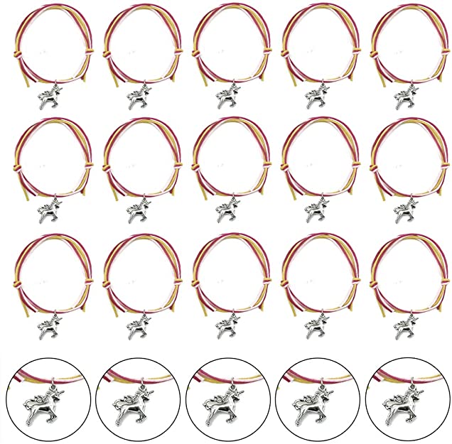 iZoeL 15 x Wish Bracelets plus 15 Organza Bags and 15 Gift Cards, Unicorn Bracelets Good Luck Friendship Wishing Charm Good Luck Present, Party Bag Fillers for Kid Girl Boy Adult