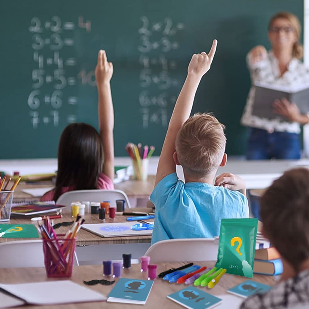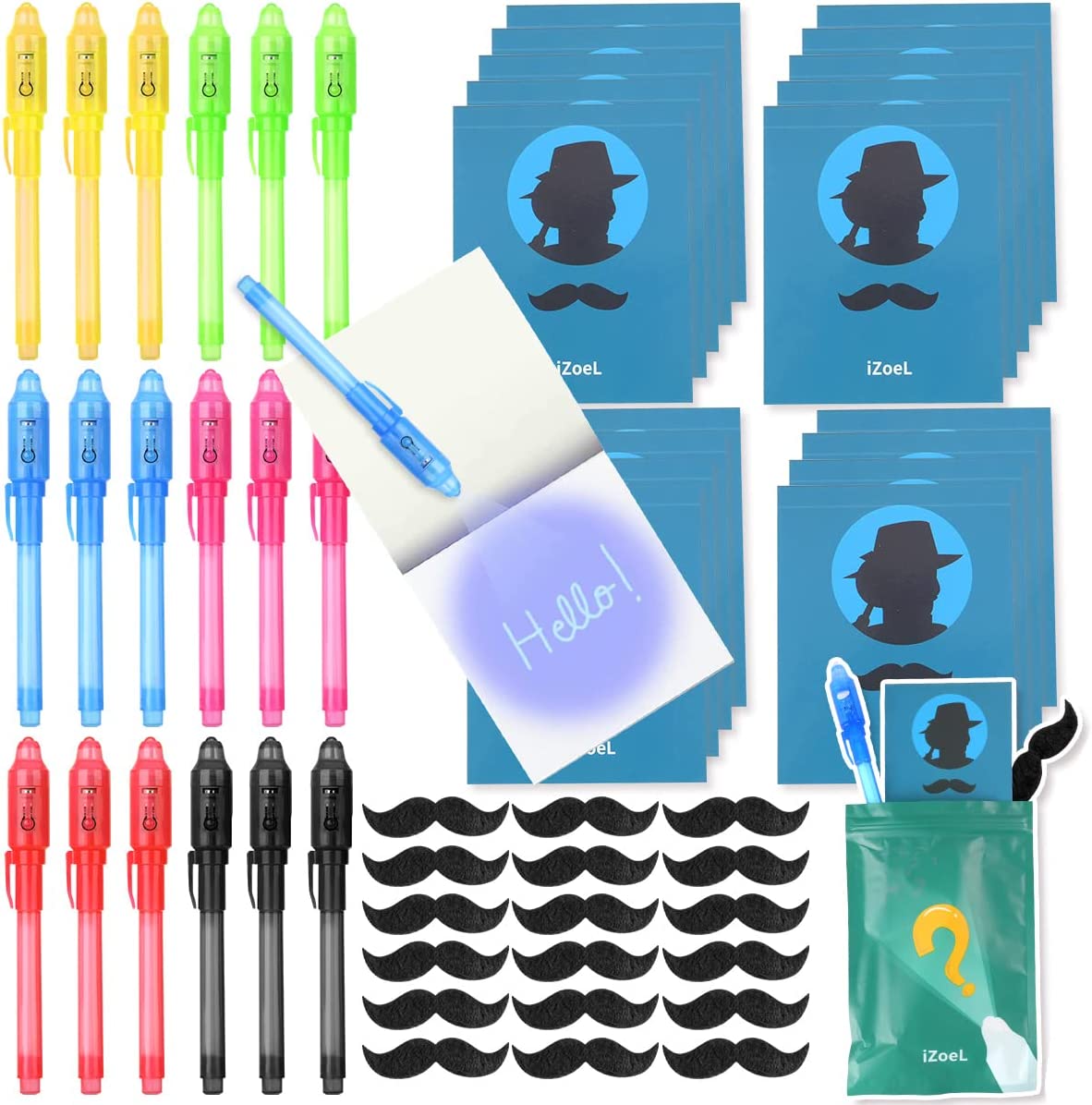 iZoeL 18 Invisible Ink Pen Secret Pen 18 Notebook 18 mustache, detective Men Invisible Writing with UV Light, Invisible UV Pens Detective Birthday Pinata Party Bags Filler School Prize