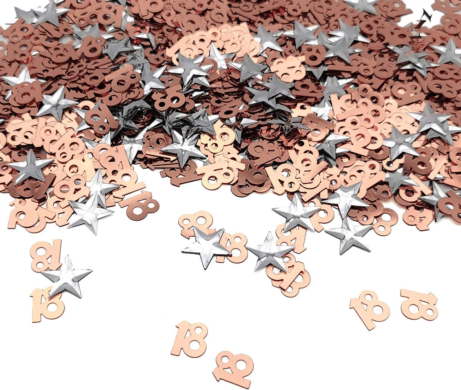 iZoeL 18th Rose Gold Table Confetti Bag 30g incl. 18th Birthday Confetti (1000pcs) Silver Star Confetti Sequin(200pcs) for 18th Birthday Party Wedding Anniversary Table Decoration (Rose Gold 18)