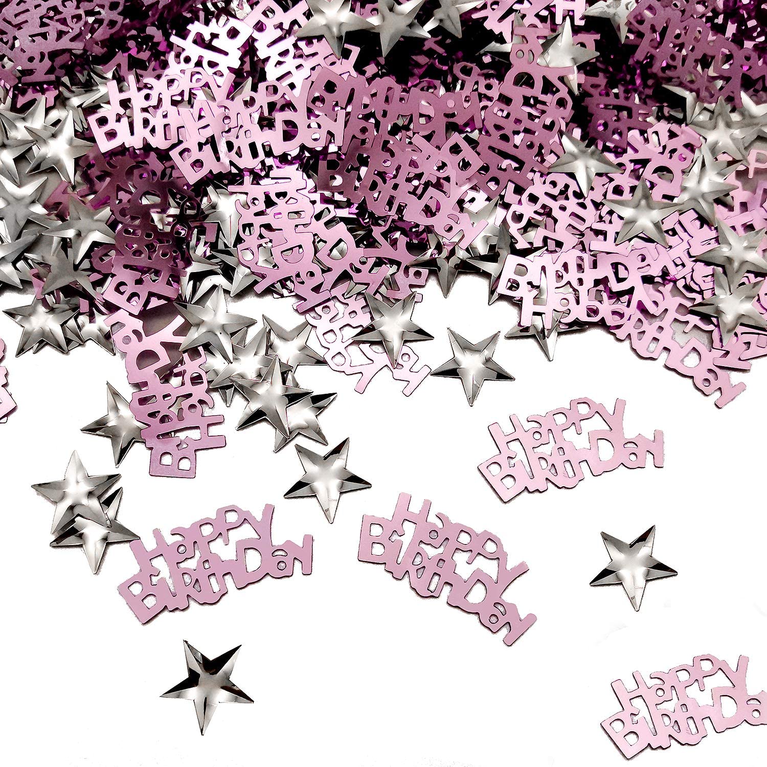 iZoeL 30g Pink Birthday Table Confetti for Girls Women Birthday Party Decoration, incl. Pink Happy Birthday Confetti (240pcs) Silver Star Confetti Sequin(350pcs)
