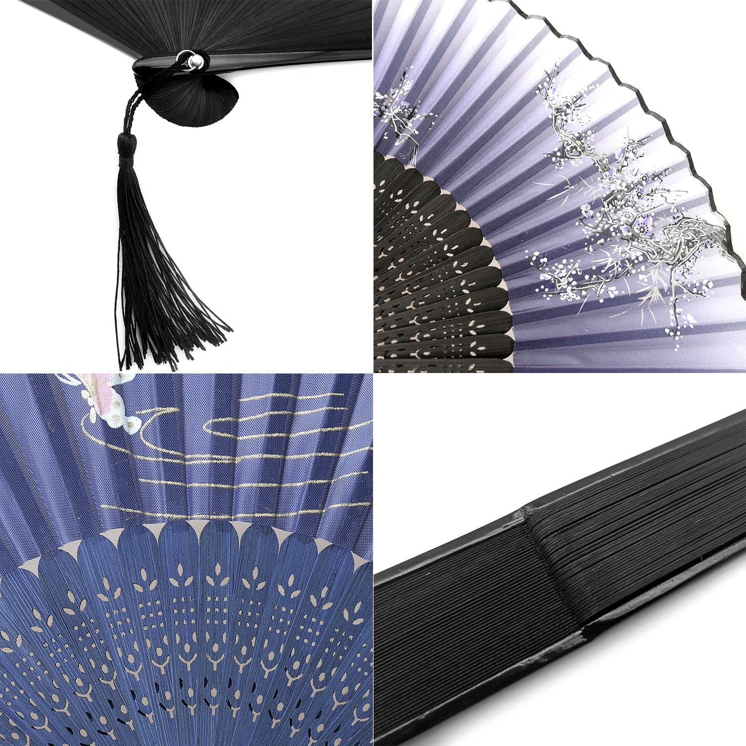 - Folding hand fans: made of fabric and exquisite bamboo, folded size: 21 x 2.7 cm; open: approx. 38 x 21 cm, folding fan fits well in your handbag when folded.