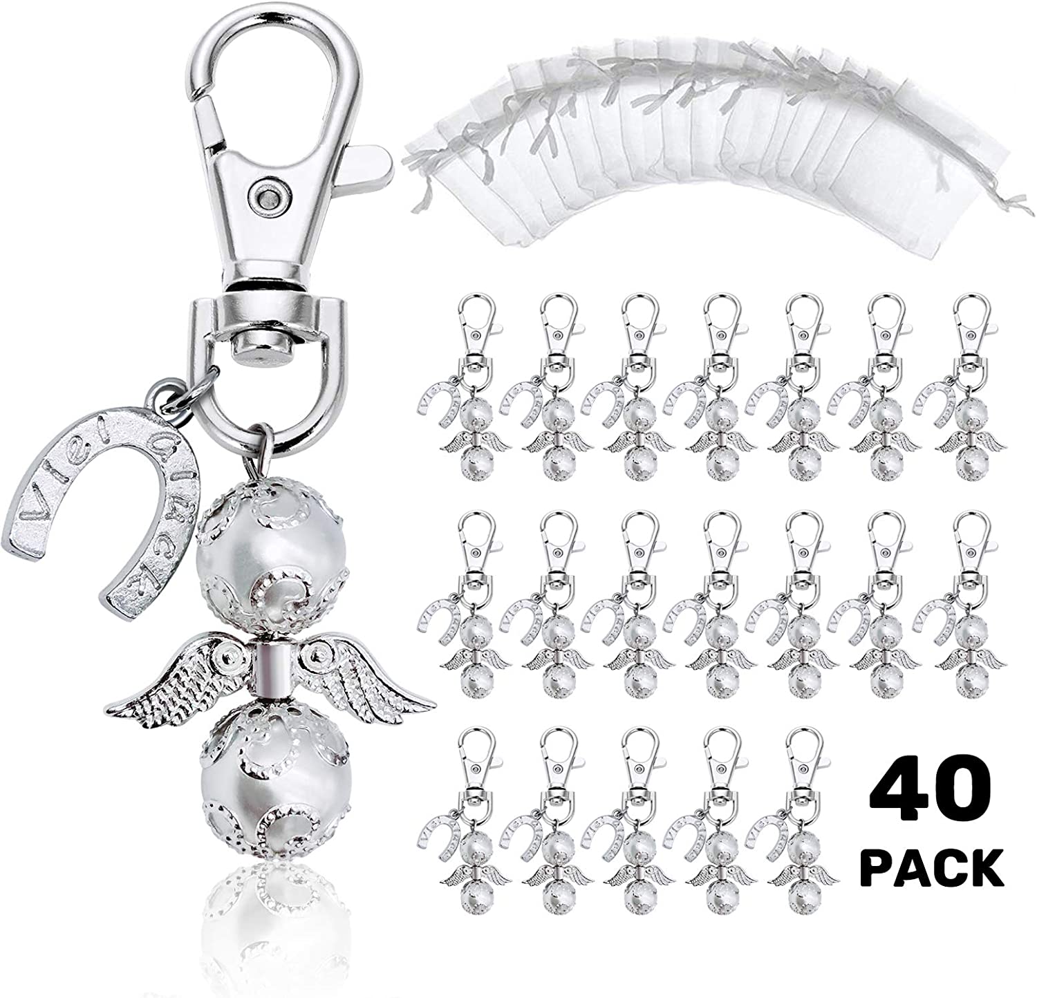 iZoeL 40 Guardian Angel Keychains Lucky Horseshoe Pendants Plus 40 Organza Bags, Thank You Nurse Gift Thank You Doctor Gift, Funeral Guest Gift Baby Shower Gift Bridal Party Favors Wedding Gift