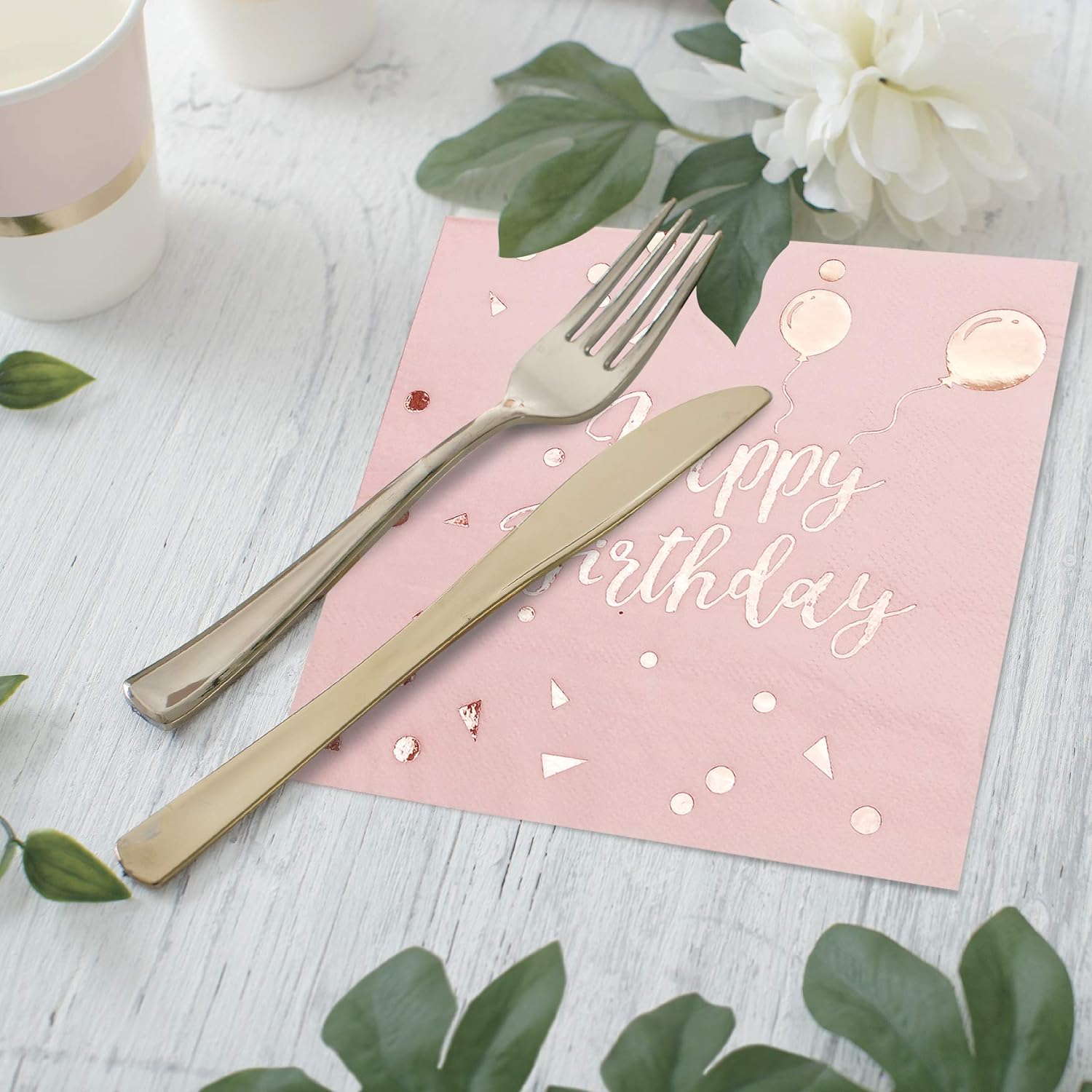 - Paket von 50 Stücke Party Servietten, dekorativ und praktische Tafeldeko für Rose Gold Geburtstag Party, geeignet für 60 Gäste.