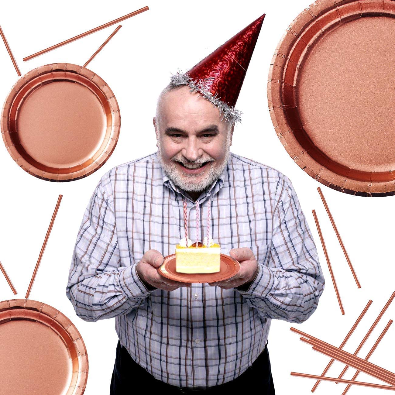 - Rose Gold Dinnerware: Including 60 Rose Gold Paper Plates, enough 60 guests to use!