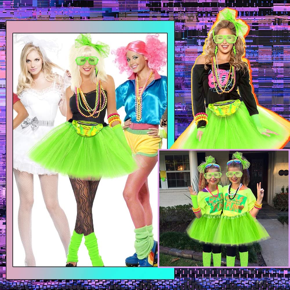iZoeL 80s Fancy Dress for Women Halloween Costumes for Girls 80s Accessories Costume Outfits - Waist Packs Tutu Skirt 4 Layers, Headband Leg Warmers Necklace Bracelets