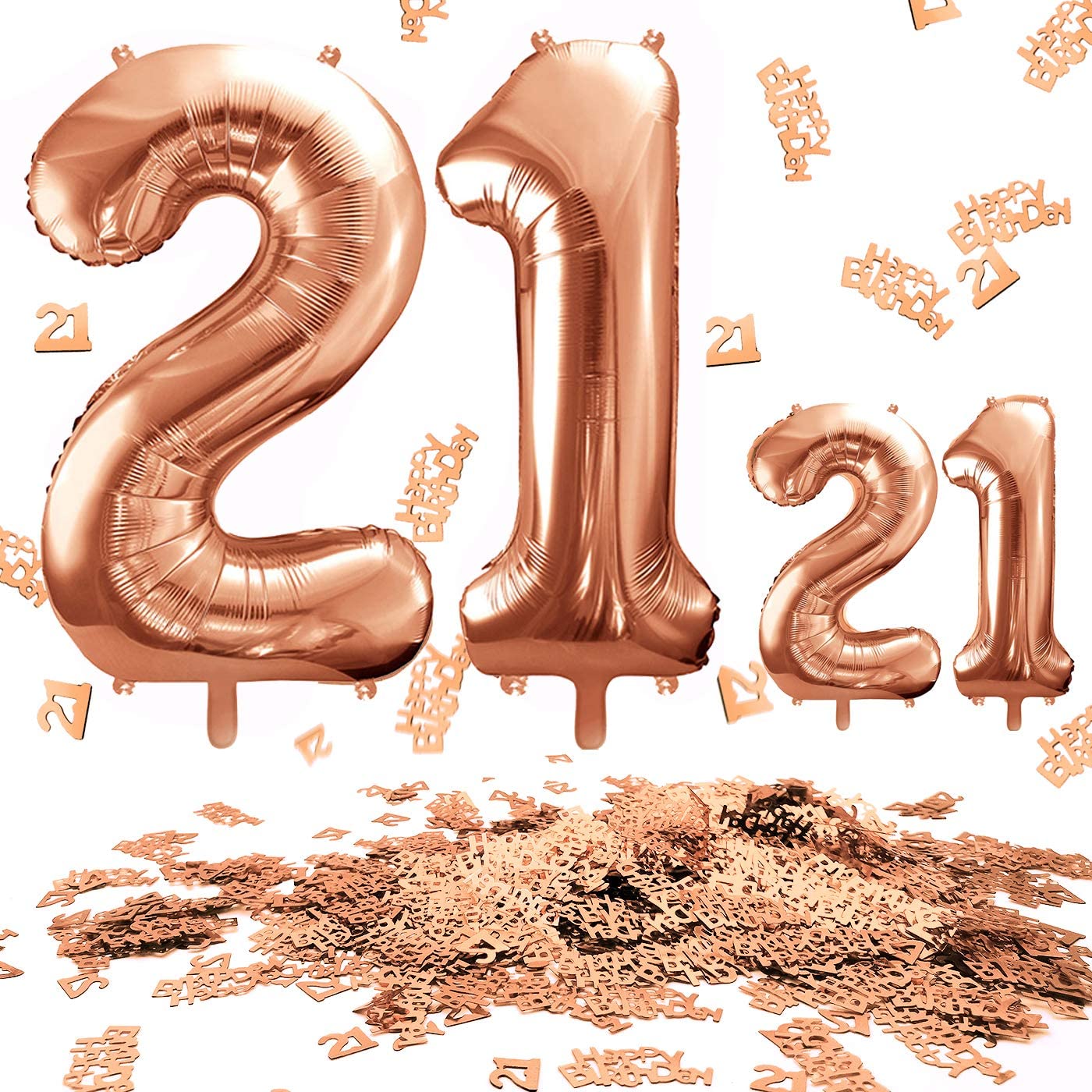 - 🎉 Rose Gold Birthday Party decoration: hang up the XXL 21 balloons or simply stick them to a wall, sprinkle small 21 and glittering confetti on the table, create into a lovely display.