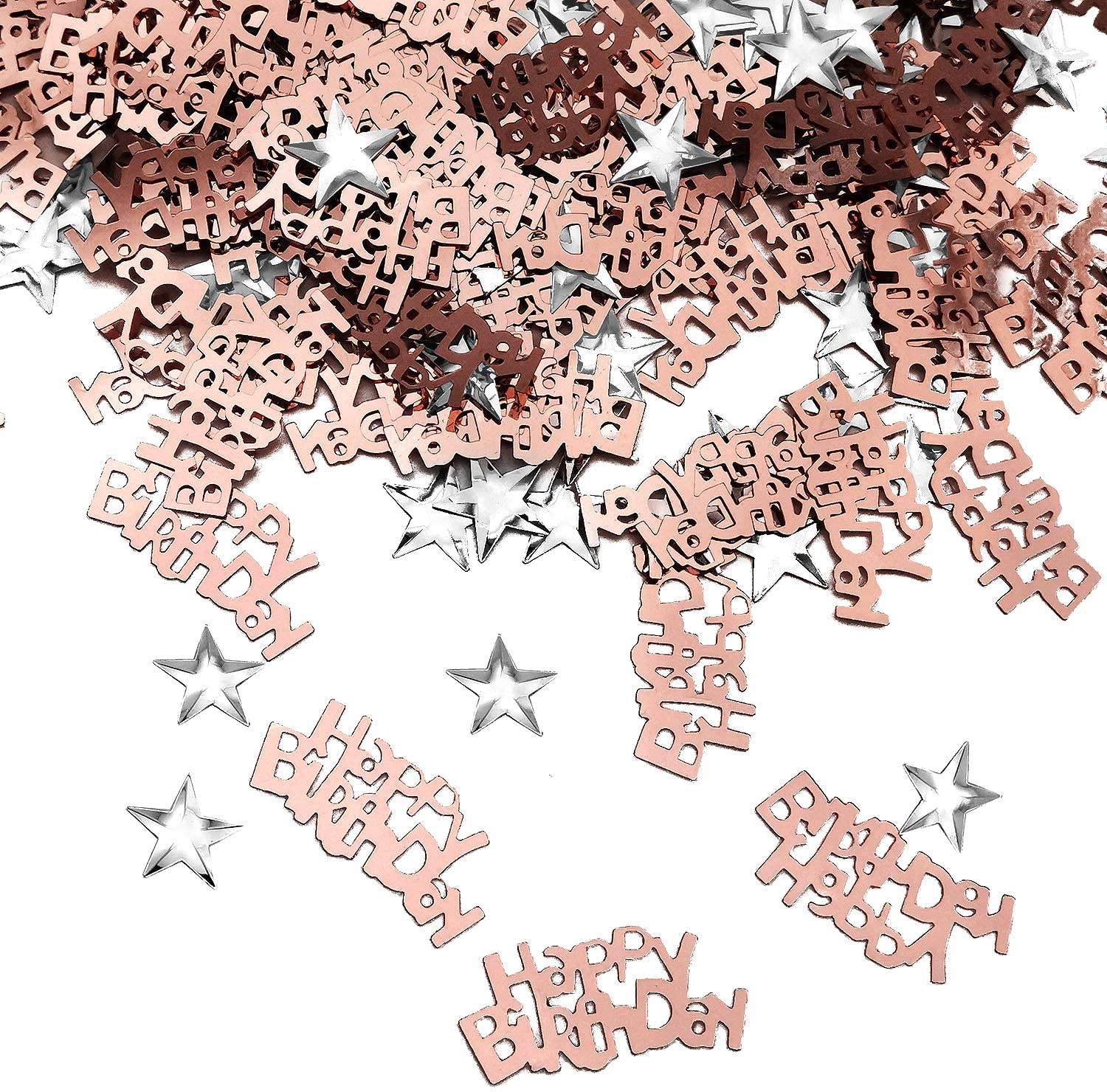 iZoeL BirthdayTable Confetti 30g incl. Rose Gold Happy Birthday Confetti (240pcs) Silver Star Confetti (350pcs) for Boys Girls Woman Kids Birthday Party Table Decoration