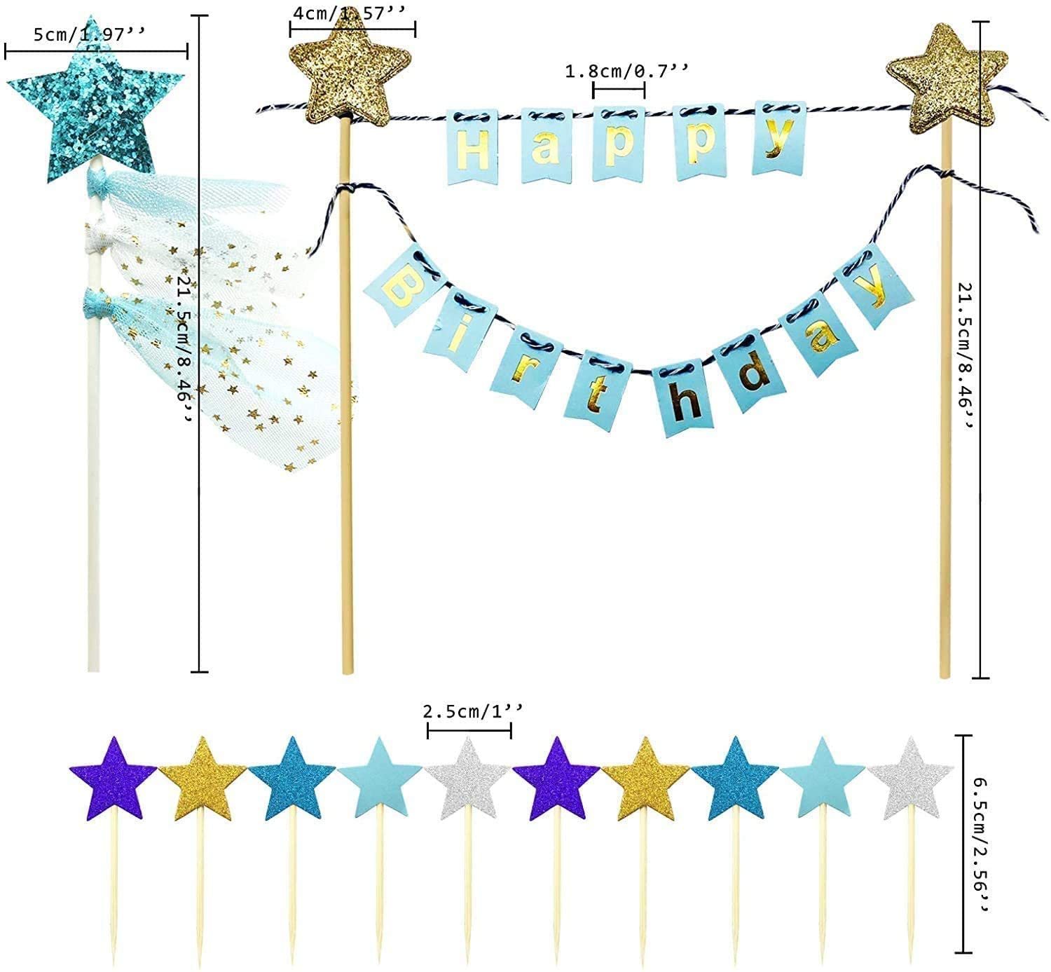 iZoeL Blue Cake Decorations, Happy Birthday Cake Topper Blue Gold Star Cupcake Topper for Boy Girl Kid Birthday Baby Shower Party Decoration (blue)