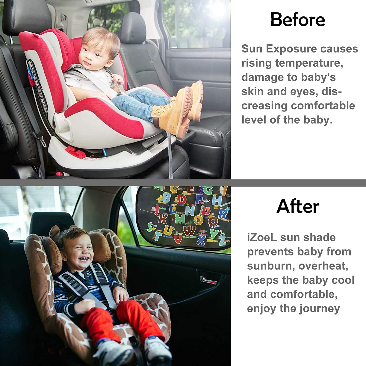 - đă2PCS CAR WINDOW SHADES FOR BABYăThe Car Window Shades for kids blocks the sun's UV rays and protects the child from burning and overheating. You can make your child more comfortable while driving.