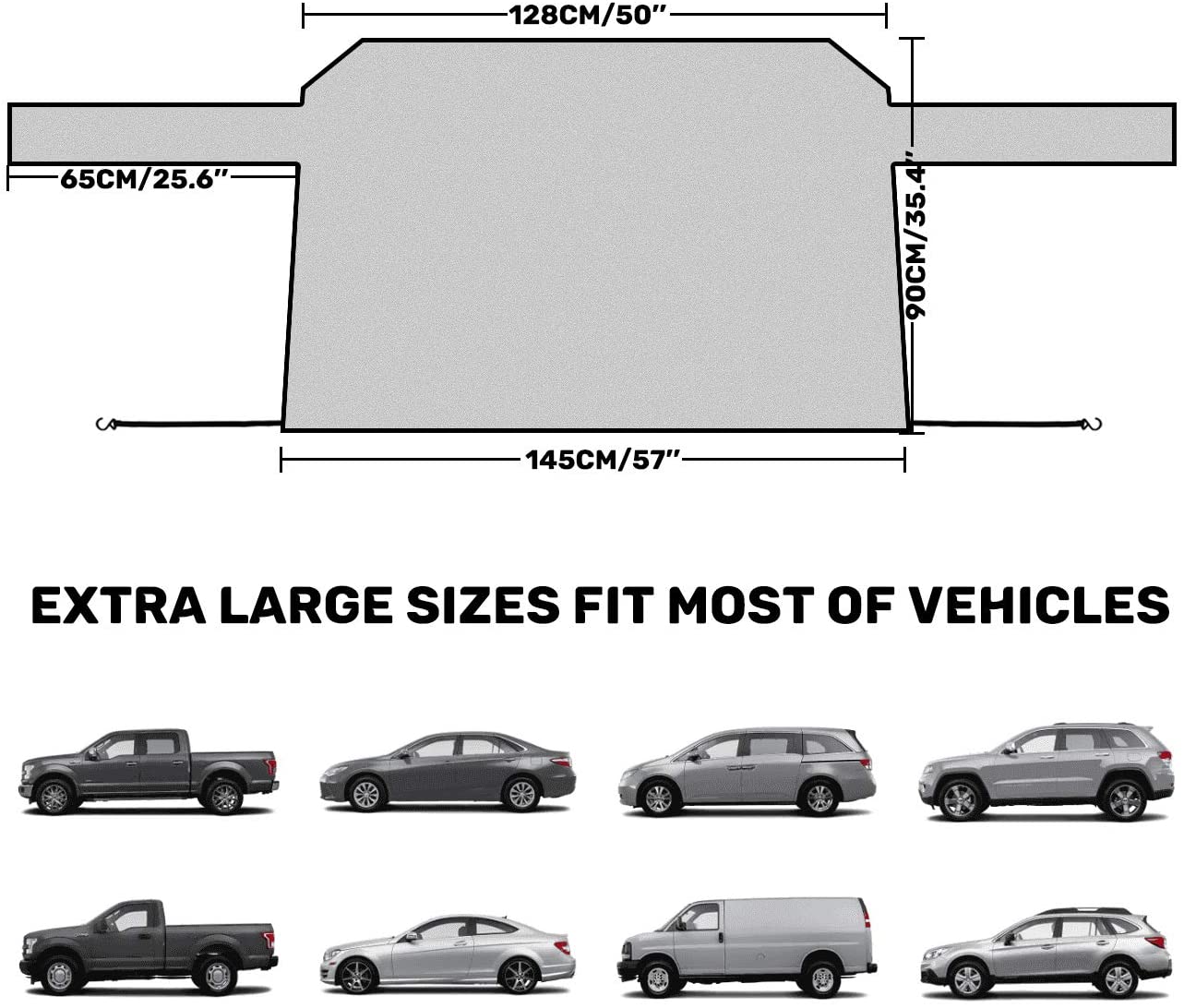 - 🚗 Car Rear Cover: 145cm * 128cm, fits on most rear windows of car SUVs vans or trucks and a few small windscreens.