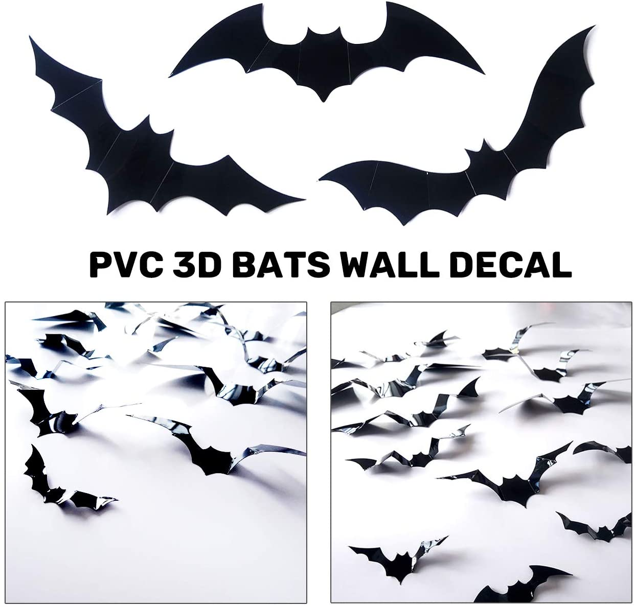 - 【3D Flying Realistic Bats】PVC black vivid bats, easily self-adhesive! Spooky and interesting, the wings can be fold, hang them from the ceiling, stick them on the walls, ceiling, chandeliers, garden fences, or anywhere to create an eerie atmosphere!