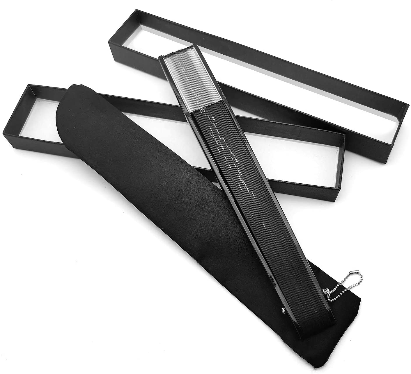 iZoeL Hand Bamboo Fan Handheld Folding Portable Fans, Black Fabric Cherry Fan with High-end Gift Bag, Cherry Pattern Hand Held Pocket Chinese Fan Idea Wedding Birthday Gift for Man Women