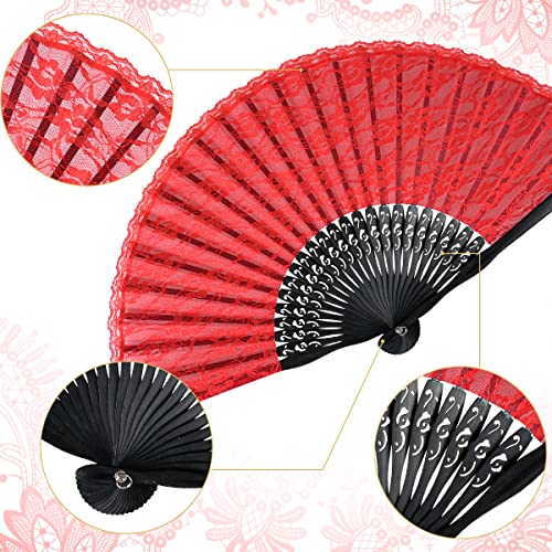 iZoeL Handfächer Hochzeitsfächer Spitze Fächer,Brautfächer Fächer Hochzeit Faltbaren Fächer Tanzfächer mit Leinen Geschenktüte für Hochzeit Fasching Party(Rot)