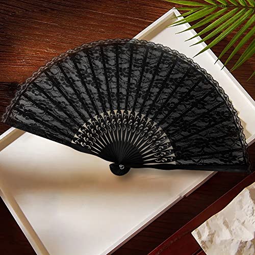 iZoeL Handfächer Hochzeitsfächer Spitze Fächer,Brautfächer Fächer Hochzeit Faltbaren Fächer Tanzfächer mit Leinen Geschenktüte für Hochzeit Fasching Party(Schwarz)