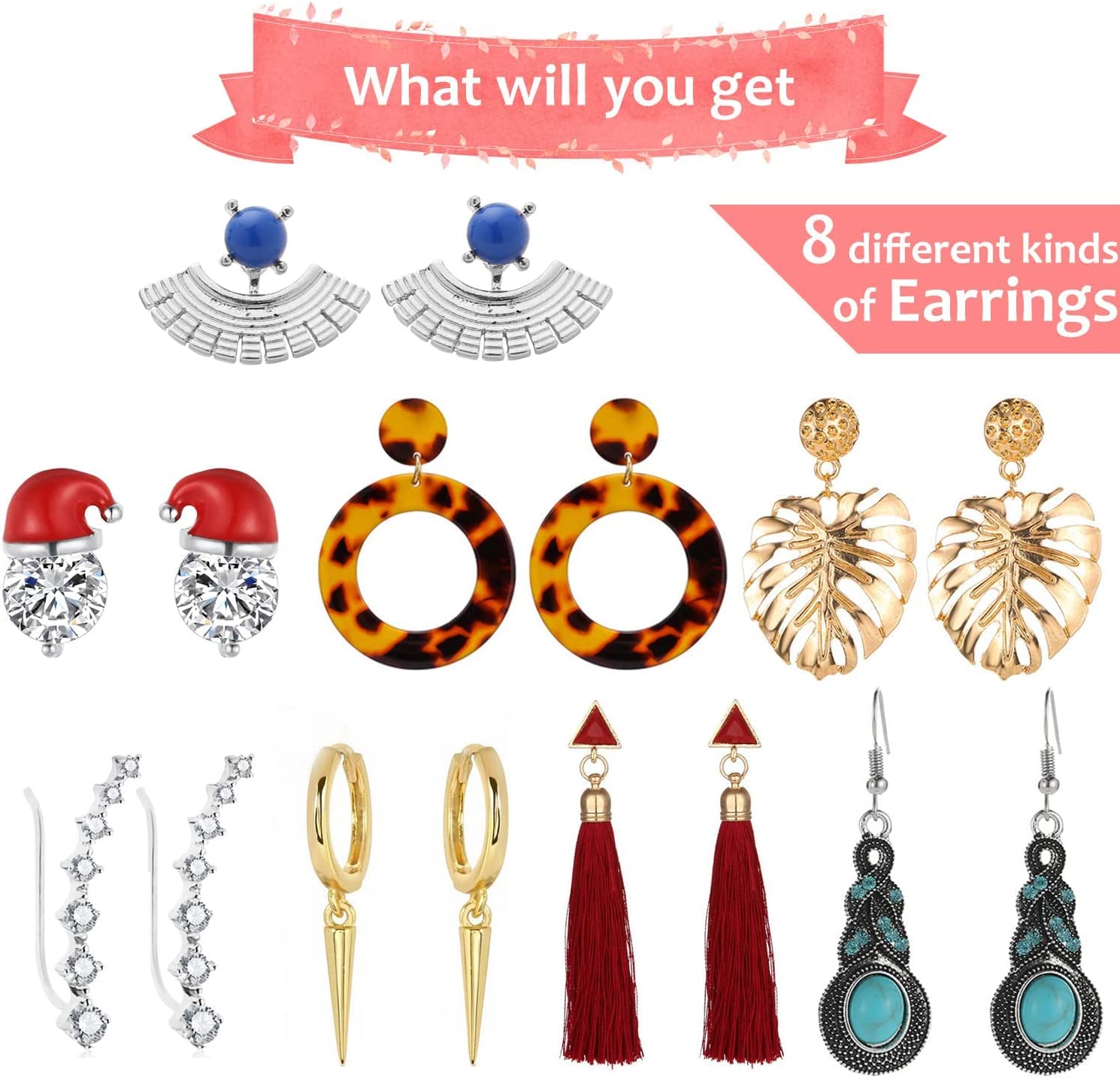 - Xmas advent calendar contains 8 earrings, 6 rings, 2 bracelets, and 2 anklets, 6 necklaces, 2 shinning charms. 24 premium jewelery after the door guaranteed to turn every door into a highlight.