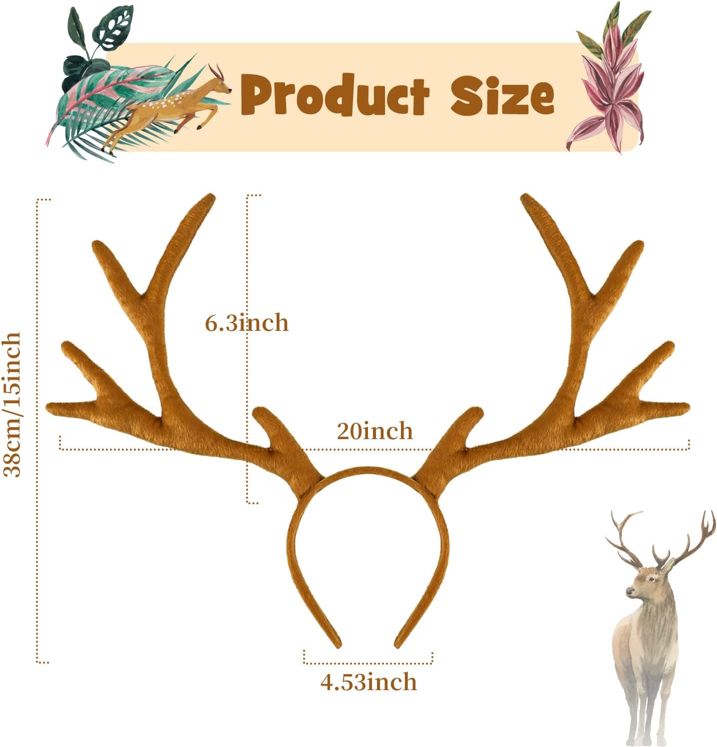 - Einheitsgröße: Zwei große braune Rentiergeweihe ist Hingucker, Reh Hörner ist einstellbar, Sie können den Hörner Form selbst einstellen, cool als Reh Hirsch Kostüm Accessoire für Kinder und Erwachsene.