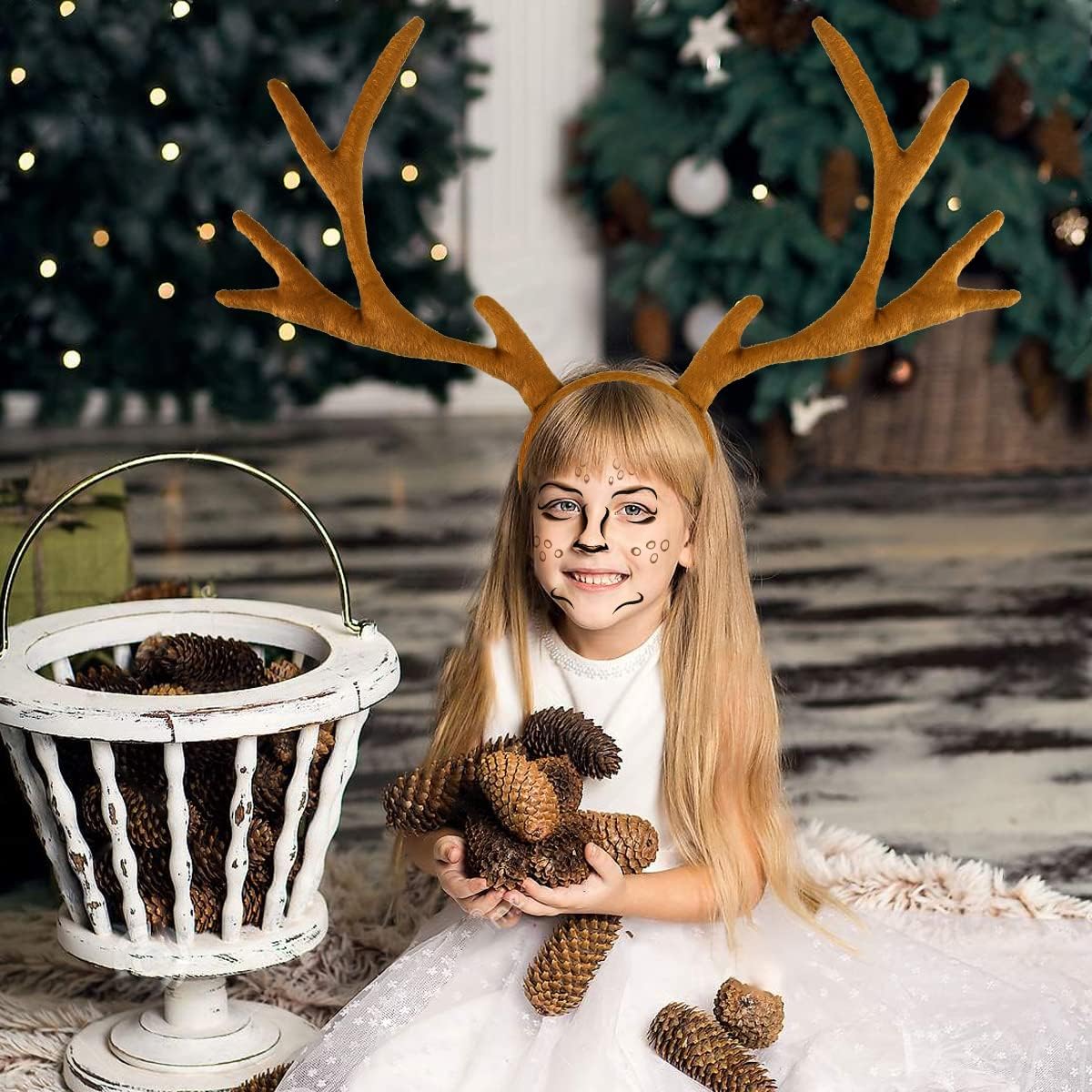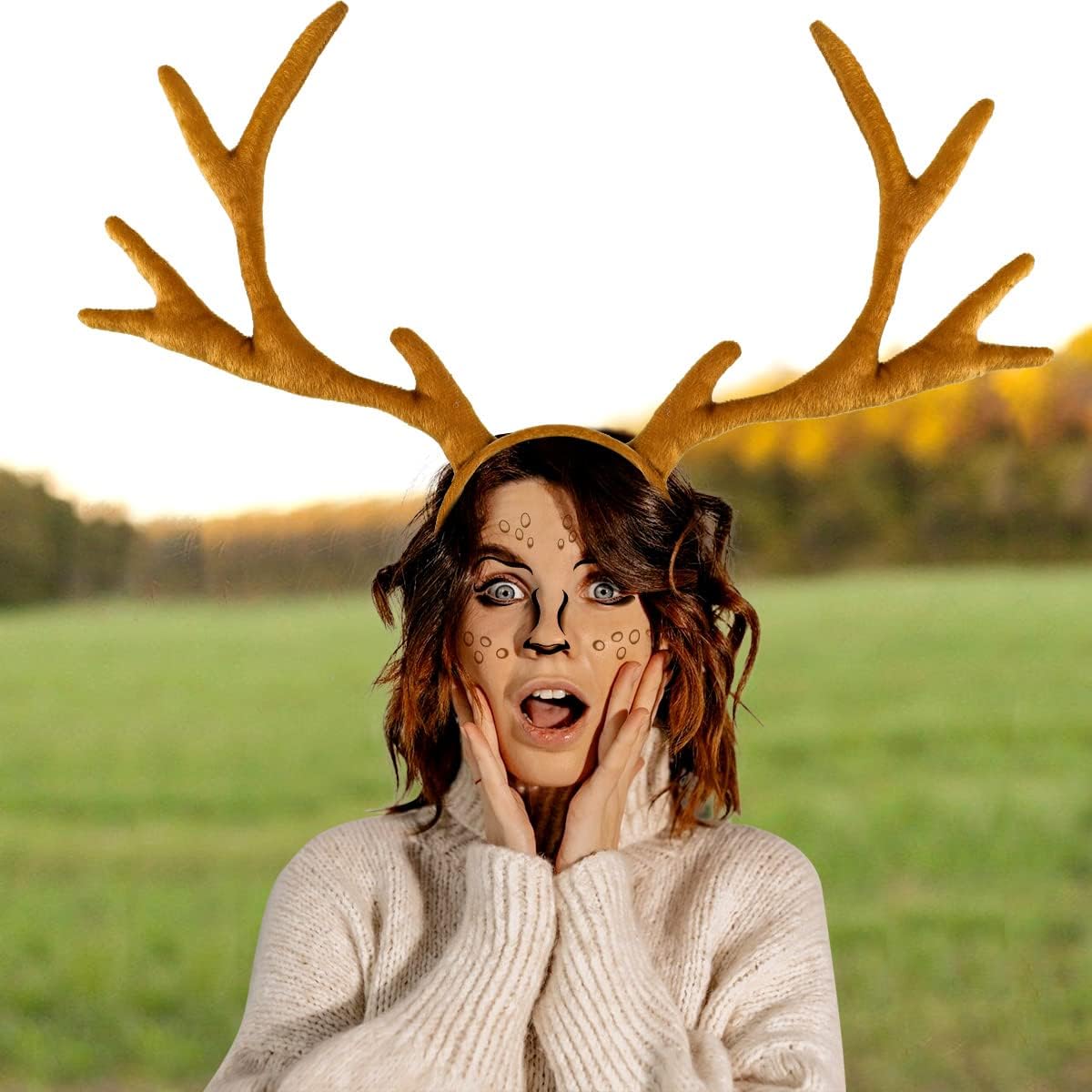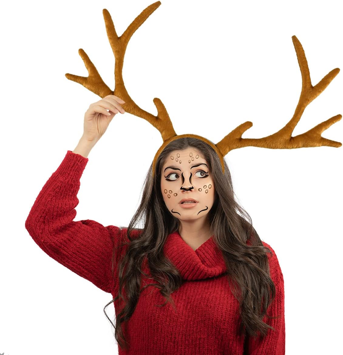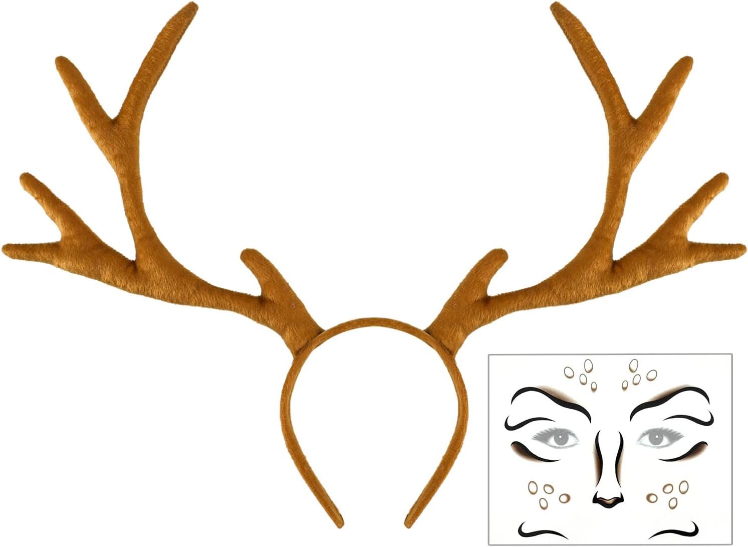 iZoeL Karneval Kostüm Damen Reh Geweih Hörner Haarreif + Reh Face Tattoo, Damen Kinder Fasching Kopfschmuck Haarreifen