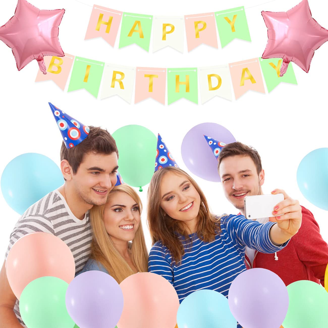 iZoeL Macaron Birthday Decoration for Girls, Happy Birthday Banner, Confetti Balloons, Big Star Balloons, for Women Her Birthday Party Supplies Baby Shower