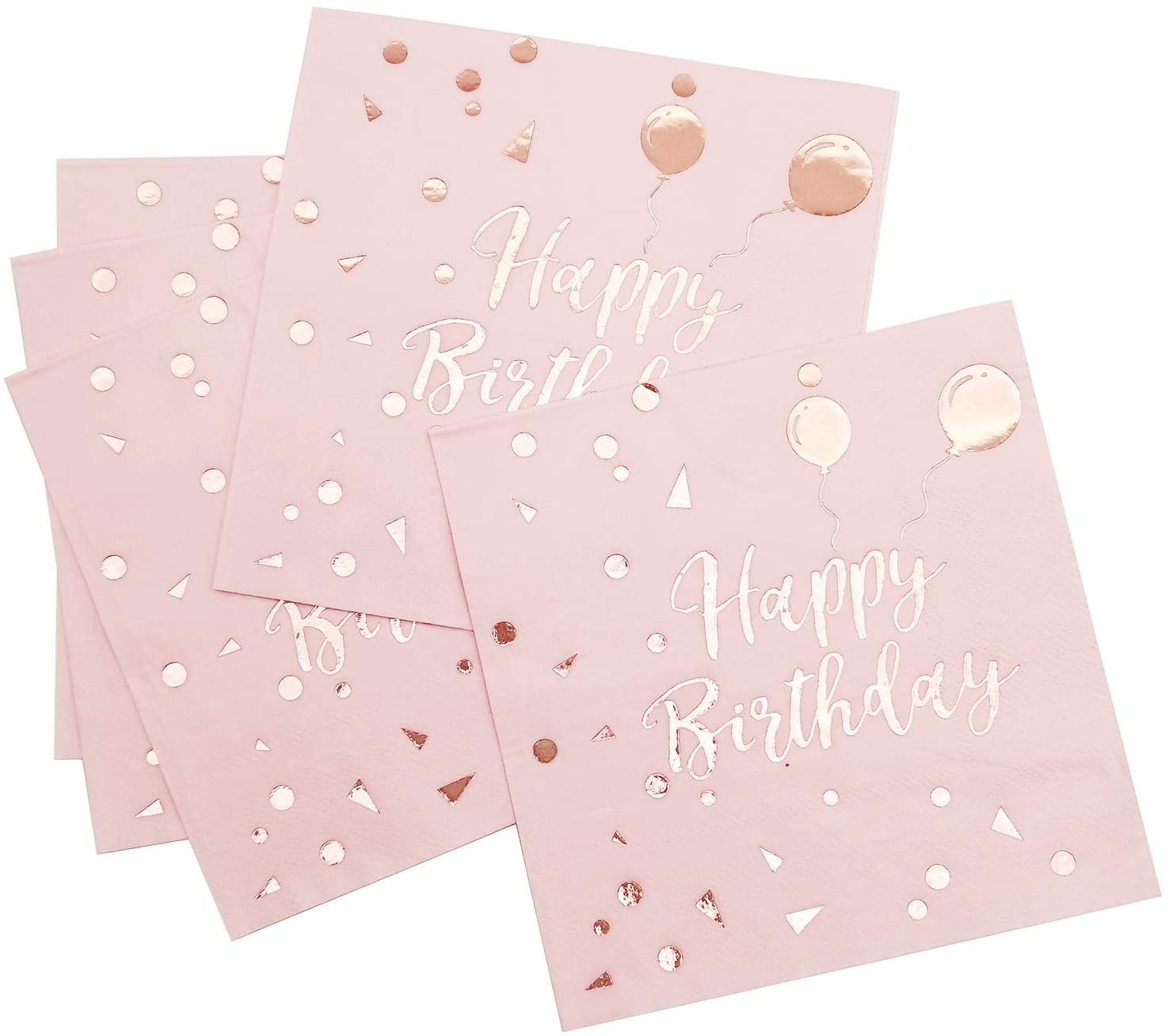 - Pink Disposable Napkins: 50pcs pink napkins with rose gold happy birthday design, a sufficient quantity to meet your daily needs and party needs.