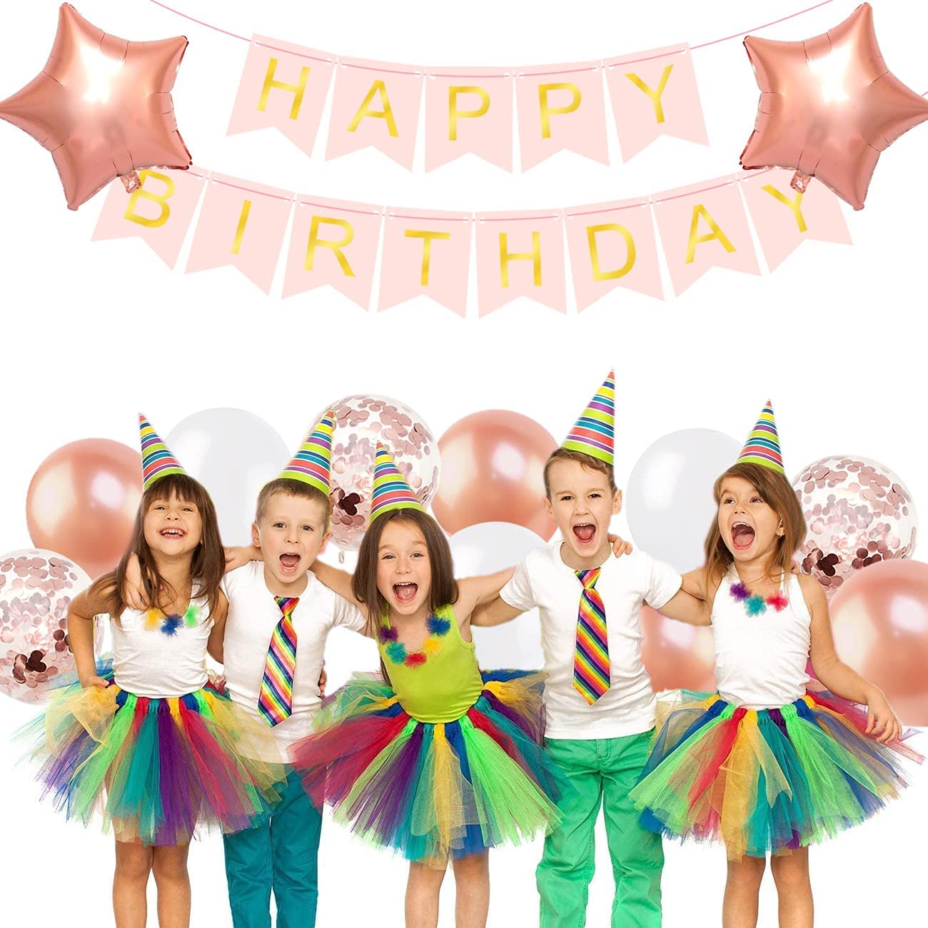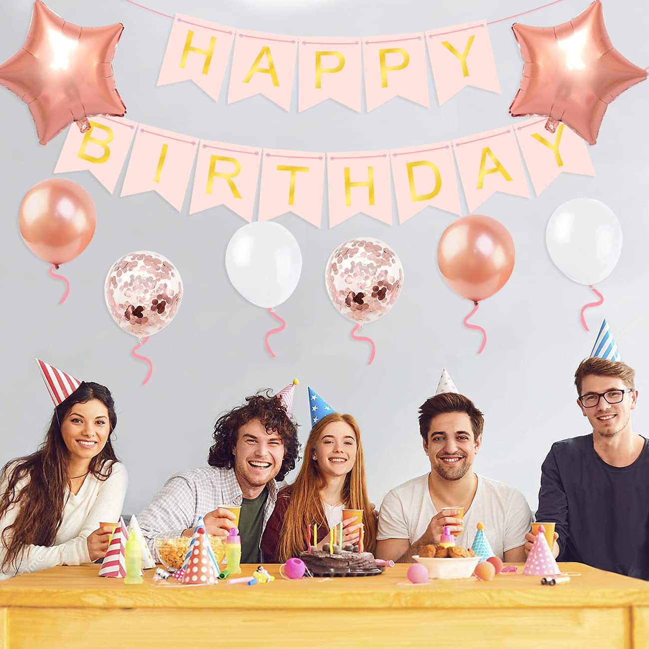 iZoeL Rose Gold Birthday Decoration for Her, Happy Birthday Banner, Confetti Balloons, Big Star Balloons, for Girls Women Birthday Party Supplies Baby Shower