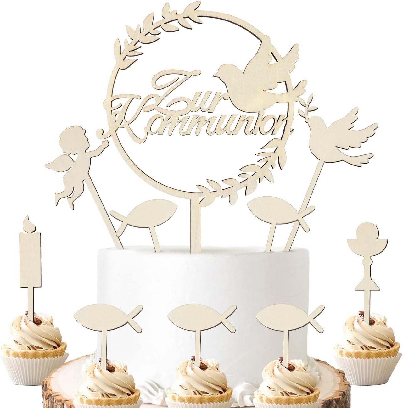 iZoeL Tortendeko Kommunion Holz Kuchendeko Cake Topper Taube Fisch Konfirmation Torten Topper Junge Mädchen, Meine Erstkommunion Kuchendeko - Cake Topper Taufe Erinnerung Kommunion(10 Stück)