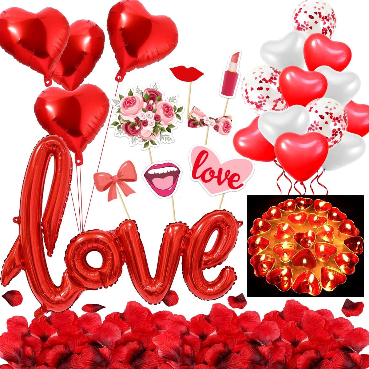 iZoeL Valentinstag Deko 50 Herz Teelichte 16 Herze Luftballon Love Folienballon 1000 Rosenblätter Romantische Tisch Deko für Geburtstag Vorschlag Hochzeit Verlobung