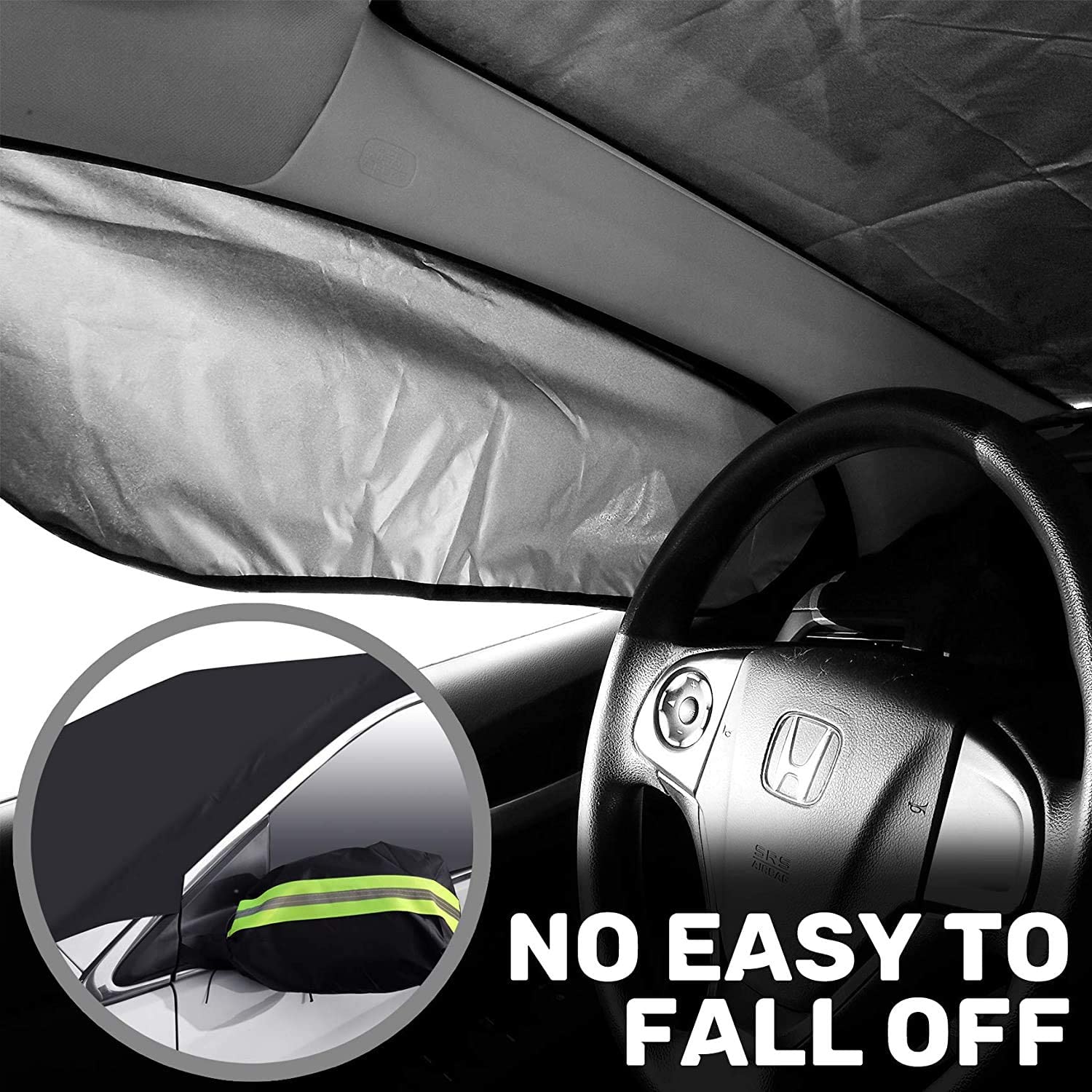 - š Full Protection Windshield Cover protects your vehicle windscreen, wipers from snow, frost, and ice. Quick and easy to install, save time and efforts, no more spraying and scraping your vehicle windshield in freezing day.