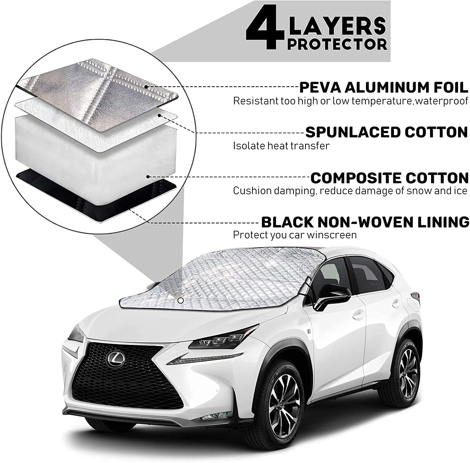 - 🚗 Full Protection Windshield Cover protects your vehicle windscreen, wipers from snow, frost, and ice. Quick and easy to install, save time and efforts, no more spraying and scraping your vehicle windshield in freezing day.